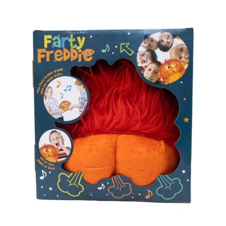 Funny Freddie has crazy hair and a comical expression. Turn him round to see his cheeky backside. When you squish his belly button, you’ll hear Freddie fart, burp or giggle. You won’t believe how long and loud his biggest trumps are – they’re so noisy they make him shake!