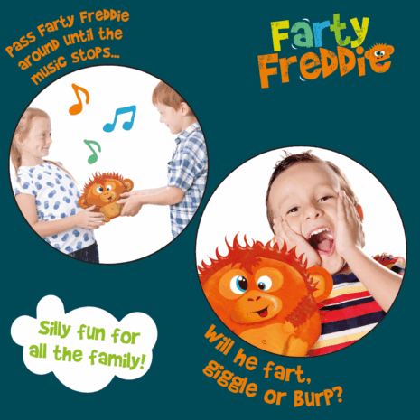 Farty Freddie is a simple game to play with as many of your friends as you like. There are no tricky rules – just pass Freddie round and wait for the music to stop, then press his tummy and listen. It’s a brilliantly silly game for kids, friends and family alike. Farty Freddie keeps children of all ages entertained. They can’t wait to hear another of his outrageous trumps!