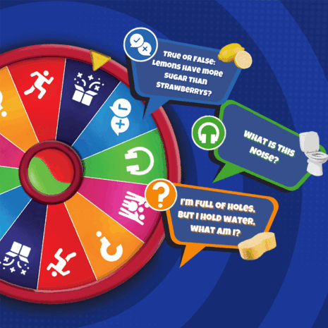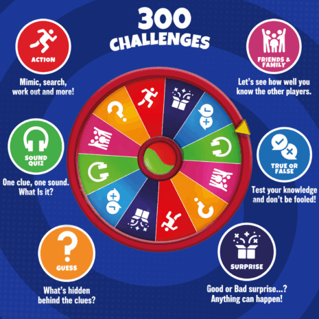 Family Games – Spin to win: Spin the wheel to hear it click just like it would on a gameshow, compete in over 300 challenges. Score points by completing challenges, highest score wins.